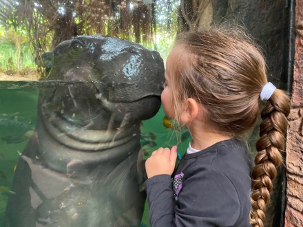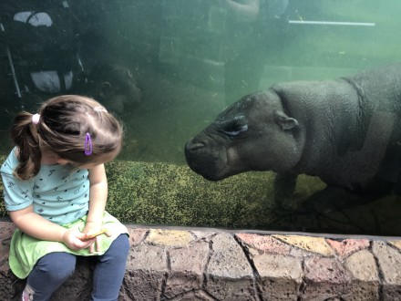 2019 mit 3 kann sie nun endlich auf den Spielplatz und interessiert sich ganz anders für die Tiere. In diesem Jahr sind es die Löwen, Gorillas und die Zwergflusspferde die es ihr angetan haben. Aber auch die Fische (besonders die Großen) sind nach wie vor interessant. Wenn es nach ihr ginge würden wir jeden Tag in den Park gehen. Sie war nun auch alt genug um sich schminken zu lassen. Die Schminkstation befindet sich auf dem Spielplatz und ist ein kostenfreies Angebot. Ein kleines Trinkgeld für die Dame, die schminkt, ist aber üblich. Sie macht das wirklich toll und mit Liebe. Die Kinder können sich ein Tier aussuchen und sogar die Lieblingsfarbe aussuchen. So war unsere Kleine ein pinker Tiger. Ein anderes mal war sie ein sehr hübscher Schmetterling. Da das Schminken sehr beliebt ist, müssen sich die Kinder anstellen bzw. sich eine Nummer ziehen. Aber sie können so lange auf dem Spielplatz spielen und so geht die Zeit dann auch irgendwie rum.
